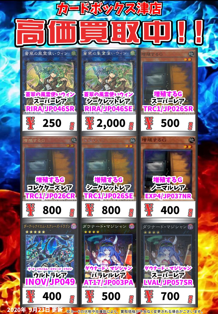カードボックス青馬堂書店矢向店 Na Twitteru 遊戯王買取情報 本日19時からランキングデュエルあります 画像カード以外も高価買取中です 大会中に査定いたしますので待たせません 増殖するg 20thシークレットレア 200 増殖するg コレクターズレア 1000 増殖するg シークレットレア